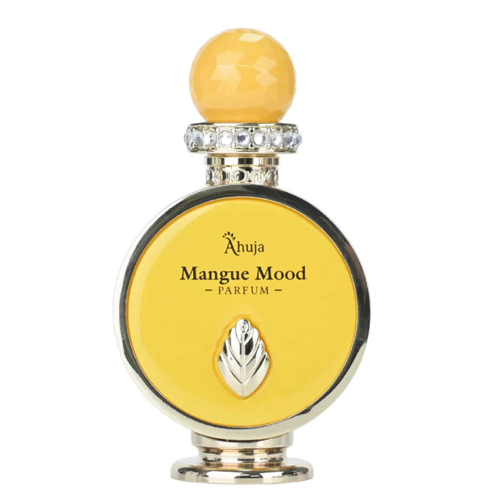 Product DescriptionAHUJA – MANGUE MOOD | “Some moods stay golden.” Mangue Mood is a celebration of golden moments — lush, bright, and smooth as sun-warmed skin. Inspired by the richness of Alphonso mango, it opens with a juicy, addictive burst of mango accord blended with apple, bergamot, lemon, and a spark of cardamom. The heart blooms into creamy tuberose, delicate lily of the valley, and sweet mandarin, creating a glowing floral swirl that feels tropical and soft, like fruit warmed by sunlight. As the scent settles, sandalwood, amber, and white musk melt into a warm, fluid dry down — silky, comforting, and beautifully radiant. Crafted with 35% organic/natural parfum oils, Mangue Mood lasts long on the skin while keeping its fruity-floral softness. Presented in a striking golden-yellow luxury box, embossed and lined with floral gold artwork, the bottle rests inside an ornate gold chamber — making this not just a fragrance, but a statement of mood and brightness. Mangue Mood is the texture of joy, the radiance of calm, and the sweetness of being seen.